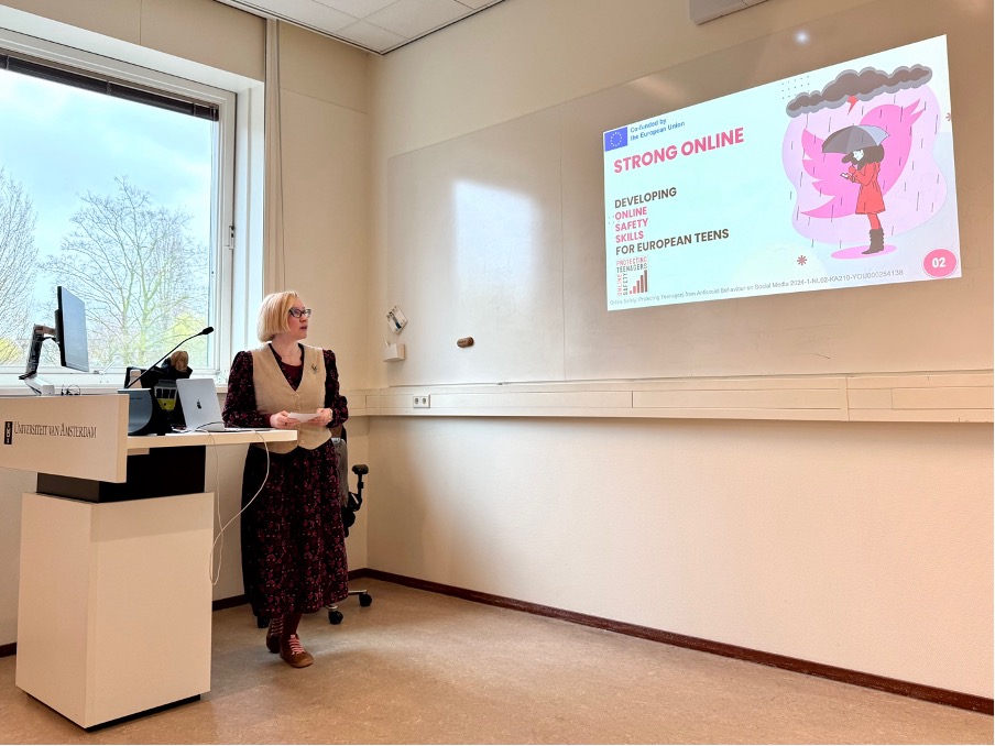 The Online Safety for Teenagers project was recently presented at the Psychology of Misinformation Symposium, hosted by the University of Amsterdam. The event brought together a diverse audience of Communication Science students, academic researchers, youth organisations, and educators working in creative fields. This interdisciplinary setting created a valuable space for dialogue on how misinformation, online behaviour, and youth engagement intersect.