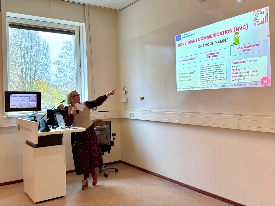 A major focus of the presentation was a practical intervention tested within the project: Nonviolent Communication (NVC) as a tool to reduce online aggression.