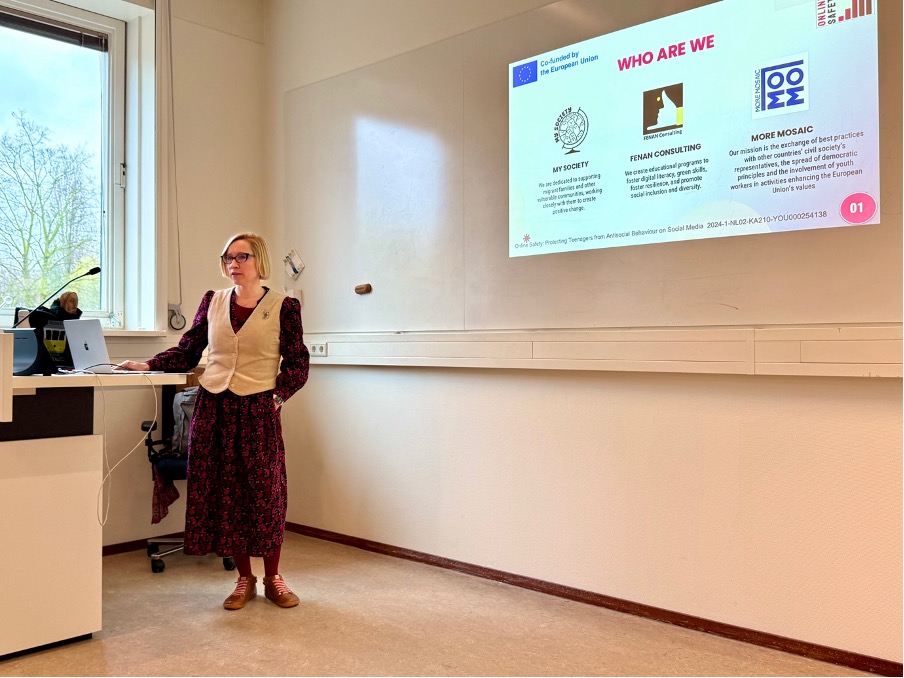 Her contribution focused on the Erasmus+ project Online Safety: Protecting Teenagers from Antisocial Behaviour on Social Media, highlighting both empirical findings and practical tools developed through the project.